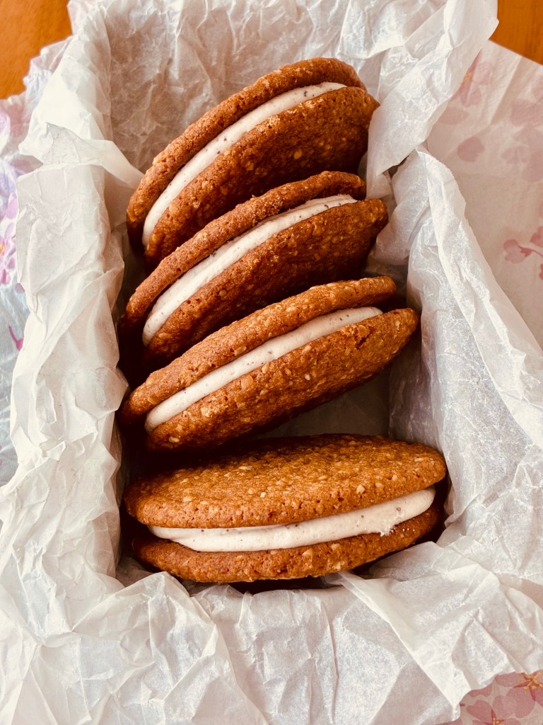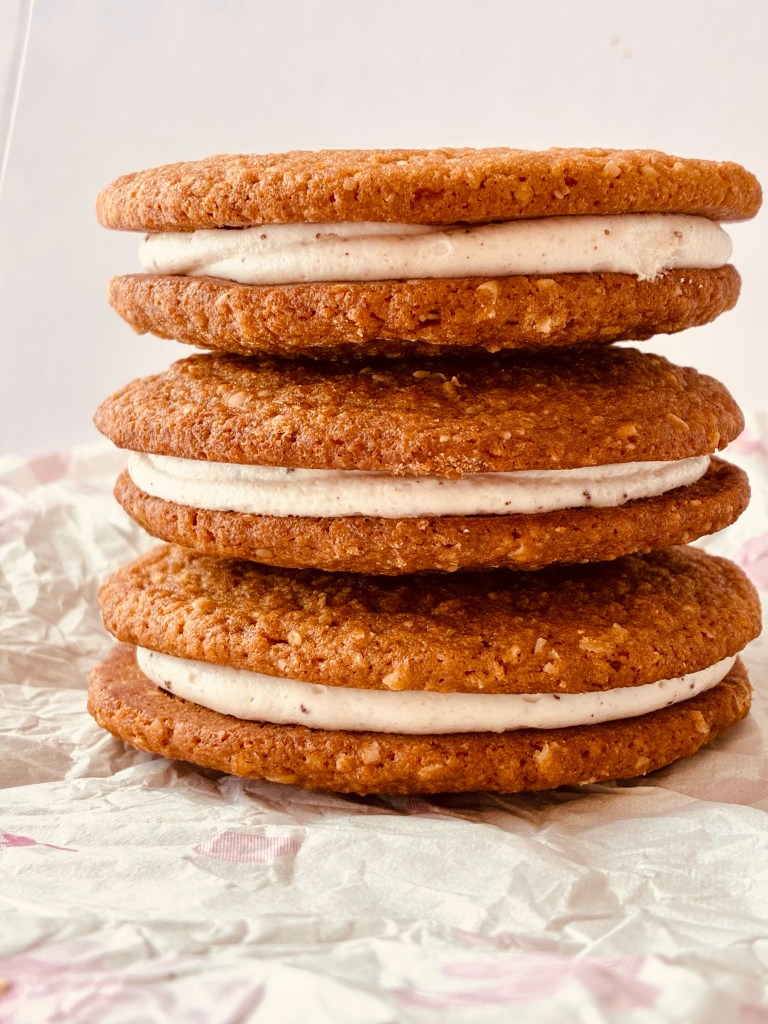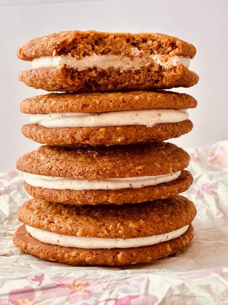 I can honestly say I’ve never had an oatmeal creme sandwich cookie, ever. That has now changed. I’m officially addicted to these (homemade version of course). They are divine. The spice is just right in the cookie- with just enough chew and the filling takes them over the top. The smell of the browned butter is worth the admission alone. I never get tired of that wonderful smell. Anytime a cookie has browned butter in it- you just know they are going to be amazing. This recipe uses both quick oats and old-fashioned oats- so plan accordingly. I used the 3 minute quick oats version. If you make the filling first- it’s more efficient, as there is browned butter in the filling and it needs time to come to softened stage.