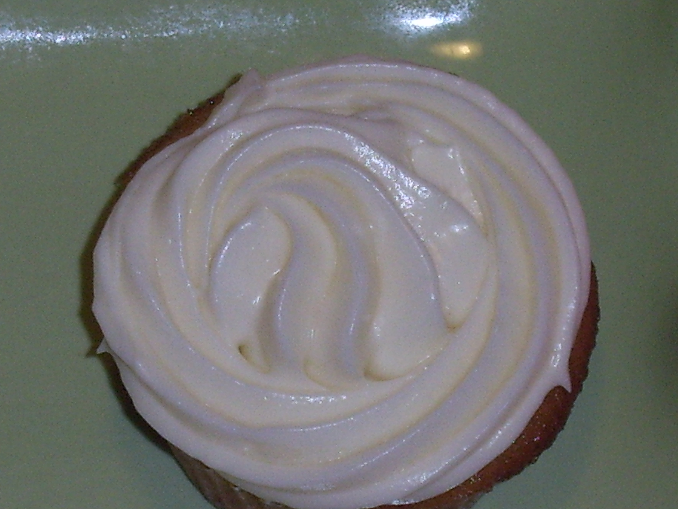 In a stand mixer bowl using the paddle attachment; whip [on high speed] the cream cheese and butter until very pliable. Stopping to scrape down the sides of the bowl. Add a cup of the sugar at a time and beat on med high speed until you have added all of the sugar. Add the vanilla and beat again until combined. Frost the cupcakes and store them in the fridge.
