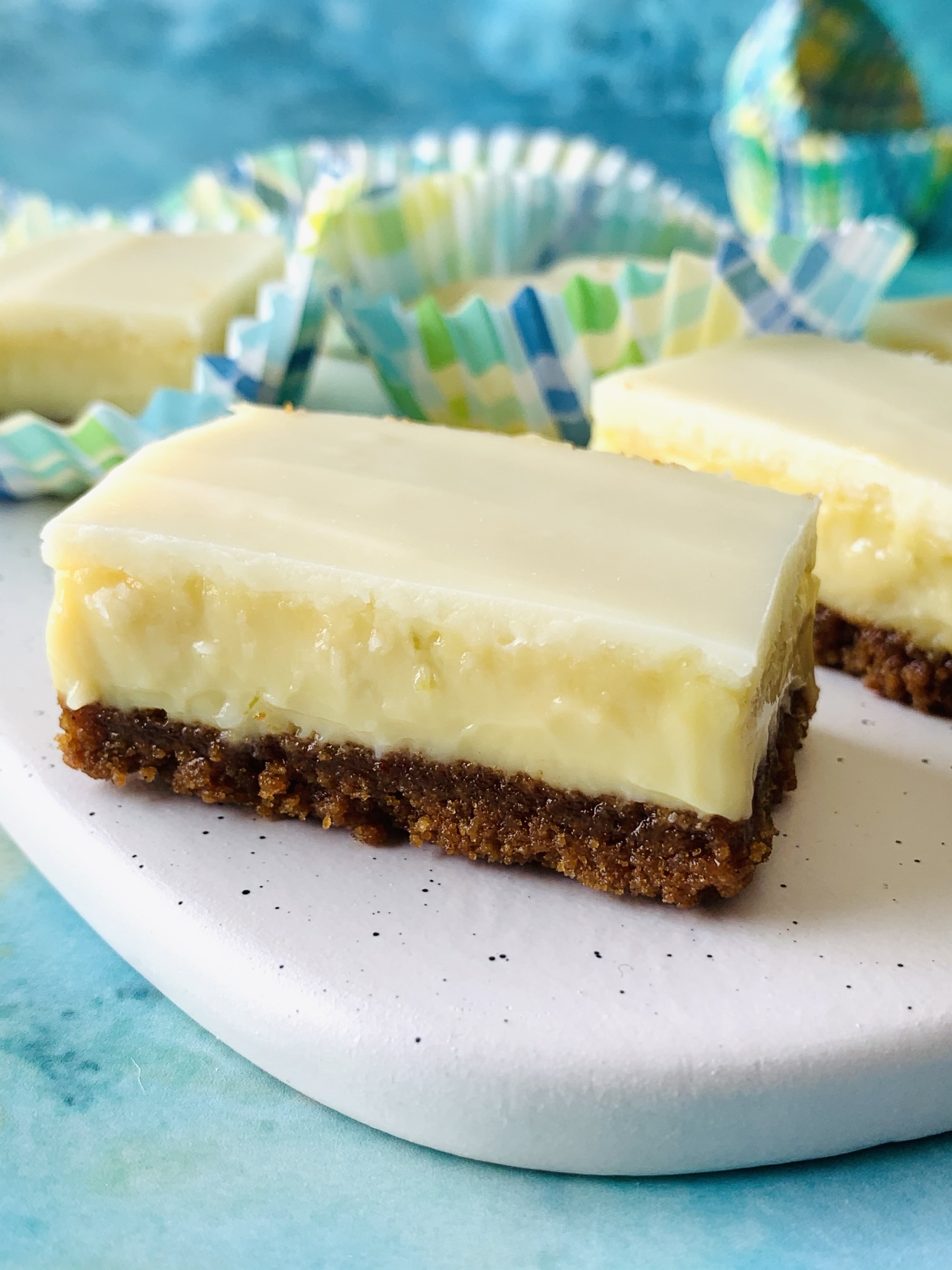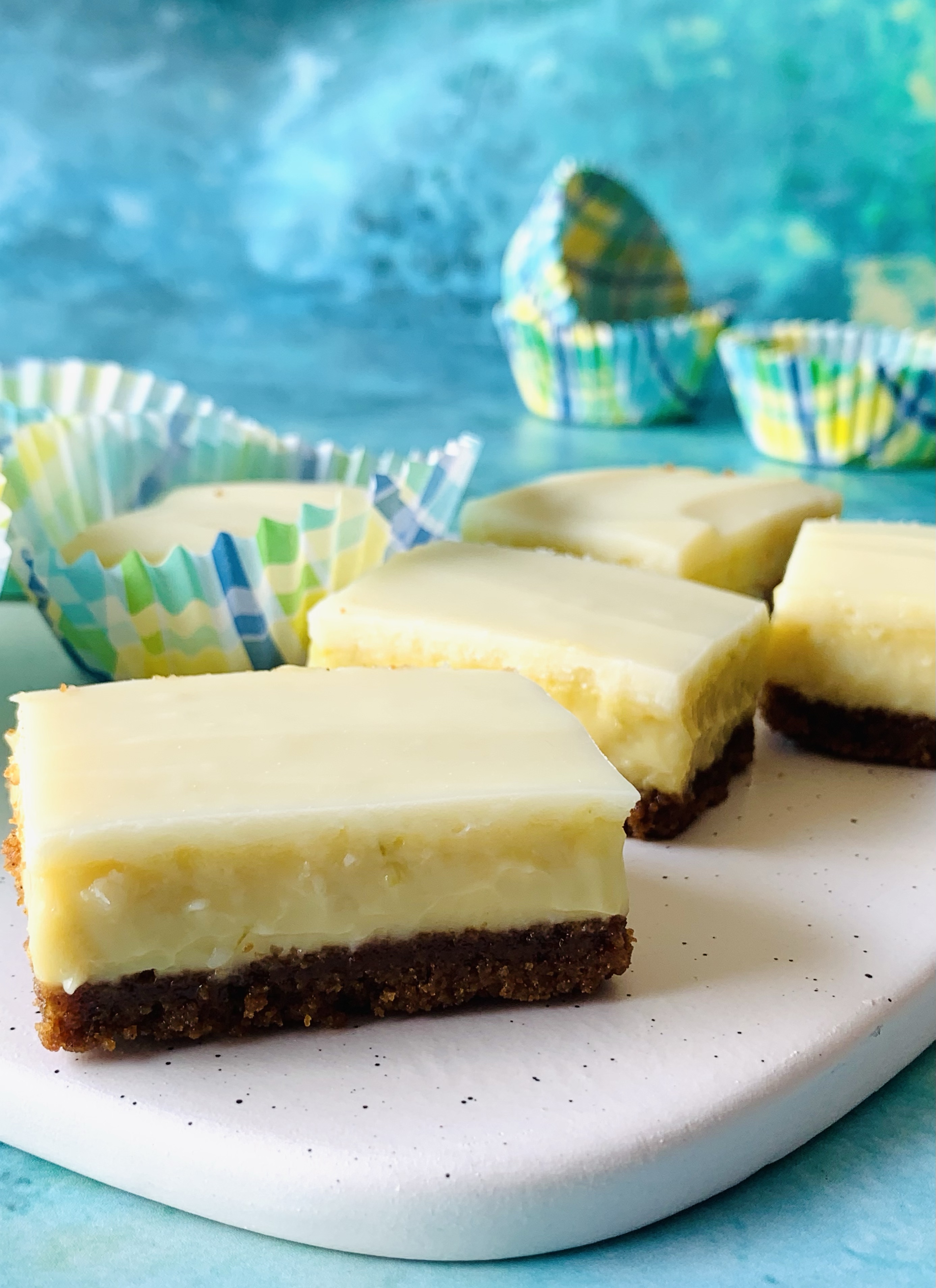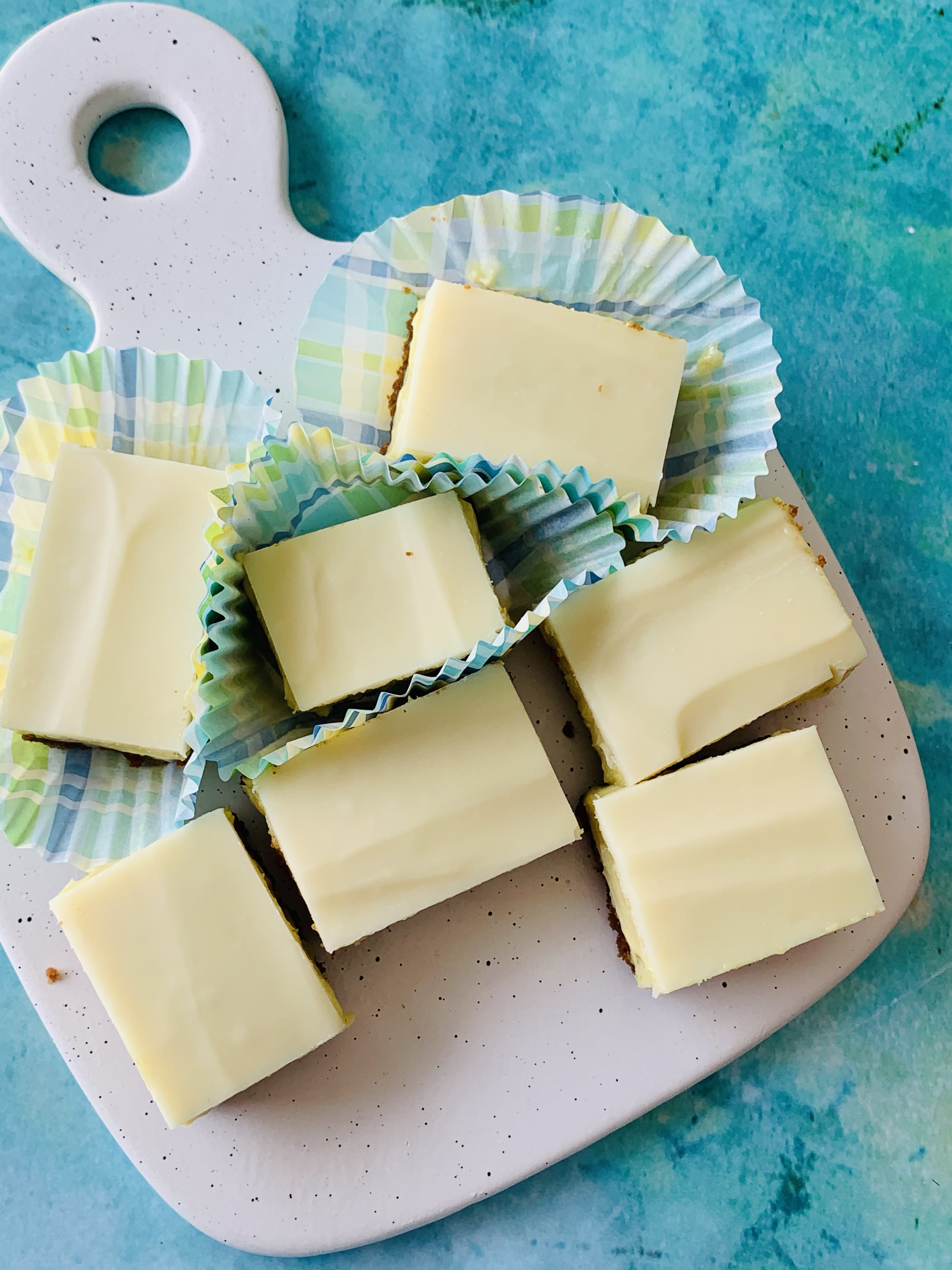 I know that sounds rather morbid…but when it’s time to cash in my chips, this is the dessert I think I want to be gumming down in my last moments. It is my ultimate favorite dessert. I’m a citrus dessert lover any day over anything else. These bars are the perfect yin and yang balance. I love the tang of the filling and the sweet white chocolate topping in these bars. This is a great recipe to bring to a shower or potluck. It is super easy and everyone seems to love them.
