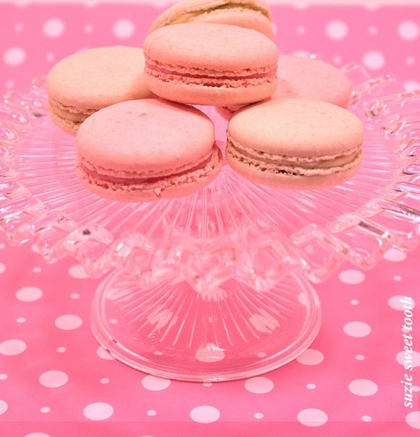 My funky pretty in pink continues with more pink recipes honoring Breast Cancer Awareness Month. Today is raspberry macarons.
