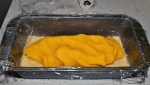 I’ve never been a fan of candy corn because they are too sweet for my taste, but I can’t resist these cute little cookies. Get one of your little goblins to help you press the cookie dough into the pan.