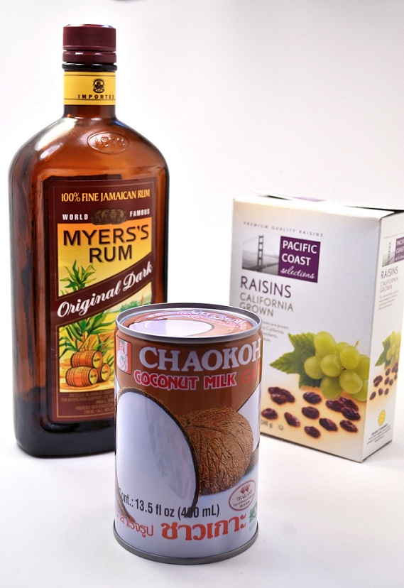 I must admit, growing up I was never into rice pudding, but as a lot of things go with getting older we develop a liking for different desserts. This is a dessert you can whip up with items you have in the pantry. I always keep coconut milk on hand, and I always have rice. If I run out of rice you know something is seriously wrong with the world; perhaps a catastrophic event of some sort. I am married to an Asian; ergo I am Asian by proxy ;-). We simply do not run out of rice. We buy rice in 25 lb. bags, exactly how I buy my flour and sugar. This is why Costco has extra-large flat carts. If 3 days go by without the rice cooker being fired up The Husband and my little one get a bit cranky. I think for me, the real reason for making rice pudding is just finding a valid excuse to soak raisins in rum. You know I’m a rum girl…Plan ahead when you make the pudding because the raisins should soak for a good long while in the rum. A long soak in rum=yum.