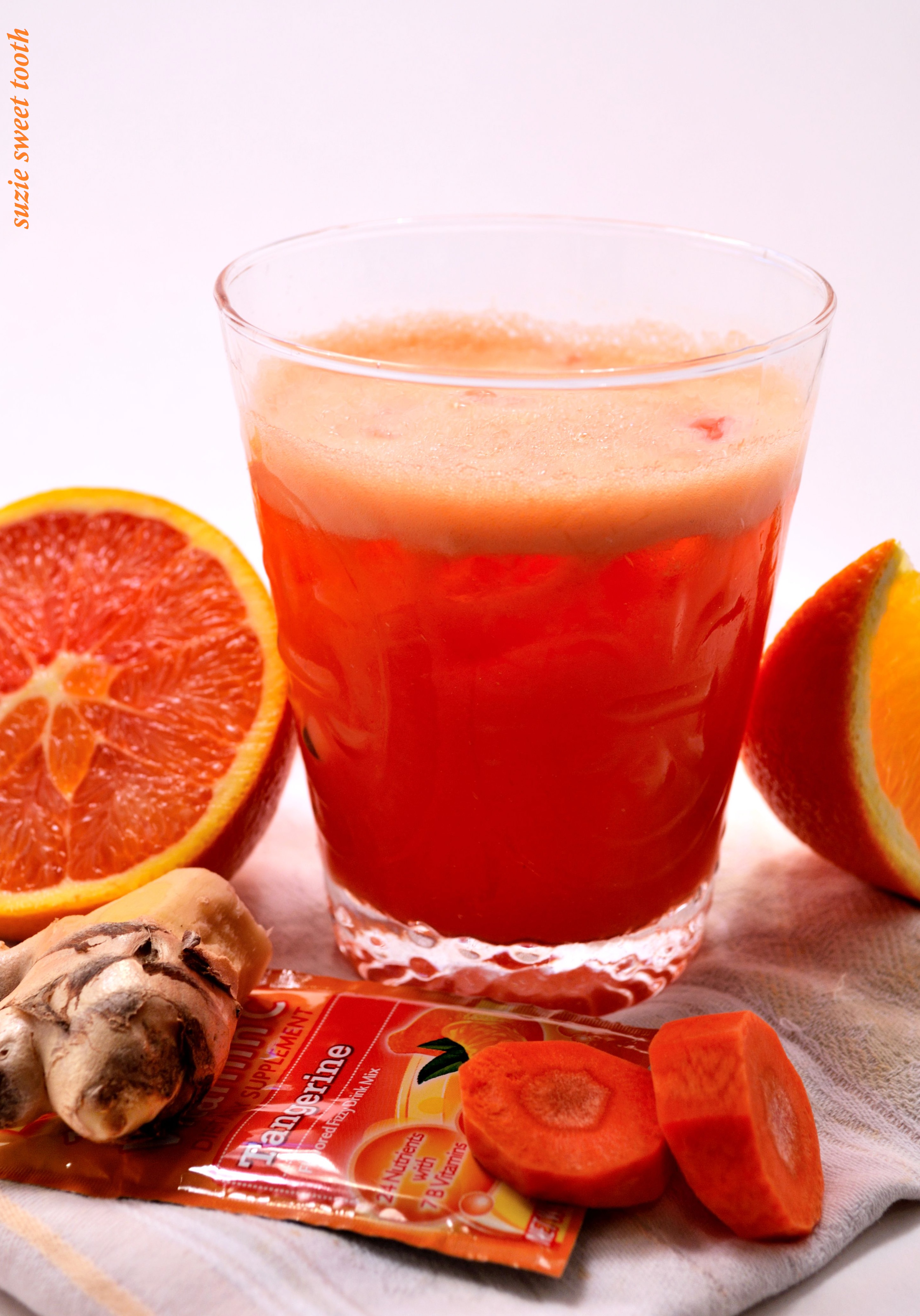1 Valencia orange squeezed including as much pulp as possible √ (check)