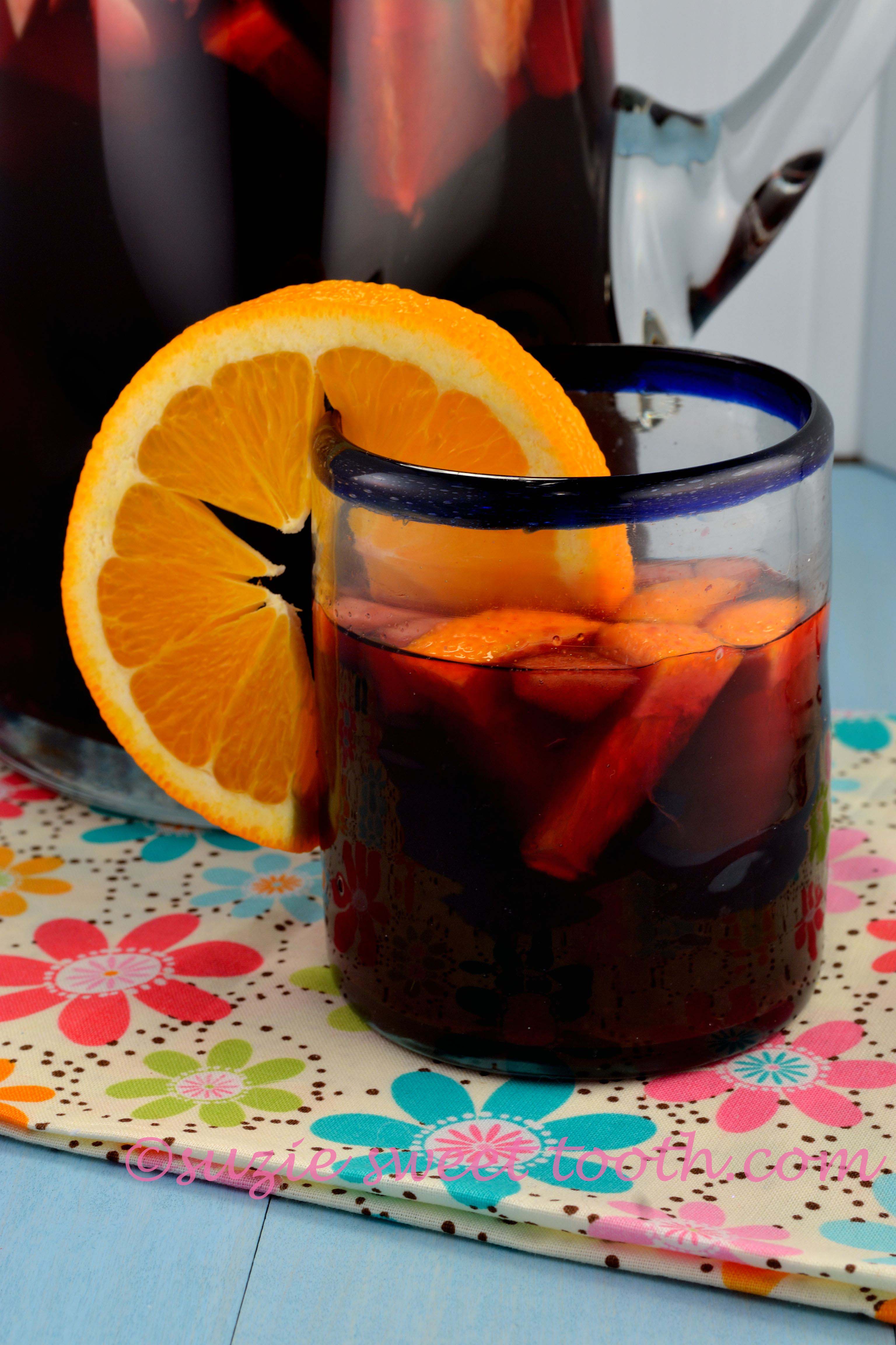 Are you ready for summer and parties? I’m ready. I’m ready for the smell of grilling meat, good friends, my garden aglow with white twinkling lights, and bowls of guacamole on the table. I’m ready for Citronella candles; their flame lazily dancing while chatting with my friends. I’m ready to be barefoot. With a glass of sangria in my hand. I’m ready for warm summer breezes and the sound of laughter from children as they run around my yard. With a glass of sangria in my hand. I’m ready for a full blown fiesta. With a glass of sangria in my hand. Invite some friends over, make some sangria (lots of it) and have a par-tay. Invite over some new friends, maybe some neighbors you’ve been too lazy to get to know.
