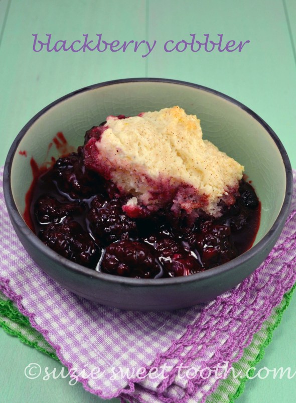 For weeks it’s been raining in San Francisco. Finally we hit a break this week and the weather yesterday was so amazing. The Husband spent some time cleaning up the garden and spiffing up the backyard. I swear the grill was whispering my name. Calling me, beckoning me to grill a hunk of meat. It just so happens I had a nice seasoned tri tip in the freezer (pssst: Guy Fieri tri tip at Costco is the bomb!) so I took it out last night to defrost. Here’s the menu: Santa Maria tri tip, roasted vegetable ratatouille and rice. I am the grill master in my house. The Husband does not have the grilling gene. It’s okay by me though, he does a good job of clean up once the meal is over. This special meal deserved a good dessert. I wanted something rustic, simple and tasty. Blackberry cobbler seemed to fit with the menu. I had some frozen blackberries in the freezer so it worked out perfect. You can certainly use fresh in this recipe. This is the type of dessert you throw on the table and scoop it out into bowls along with vanilla ice cream. Bring on summer…