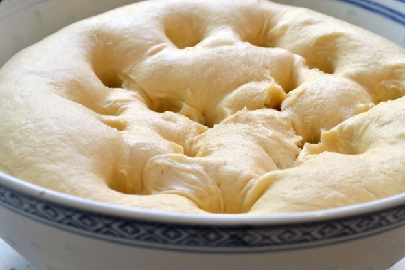 - 2. Form a dough: Microwave remaining 1/2 cup water until hot (about 115°); stir in shortening until melted. Add to yeast mixture. Beat at low speed, gradually adding 2 cups flour, until smooth. Gradually add remaining 1 to 1 1/2 cups flour, beating until a sticky dough forms. Transfer to a lightly greased bowl; turn to grease top. Cover and chill 4 to 24 hours.