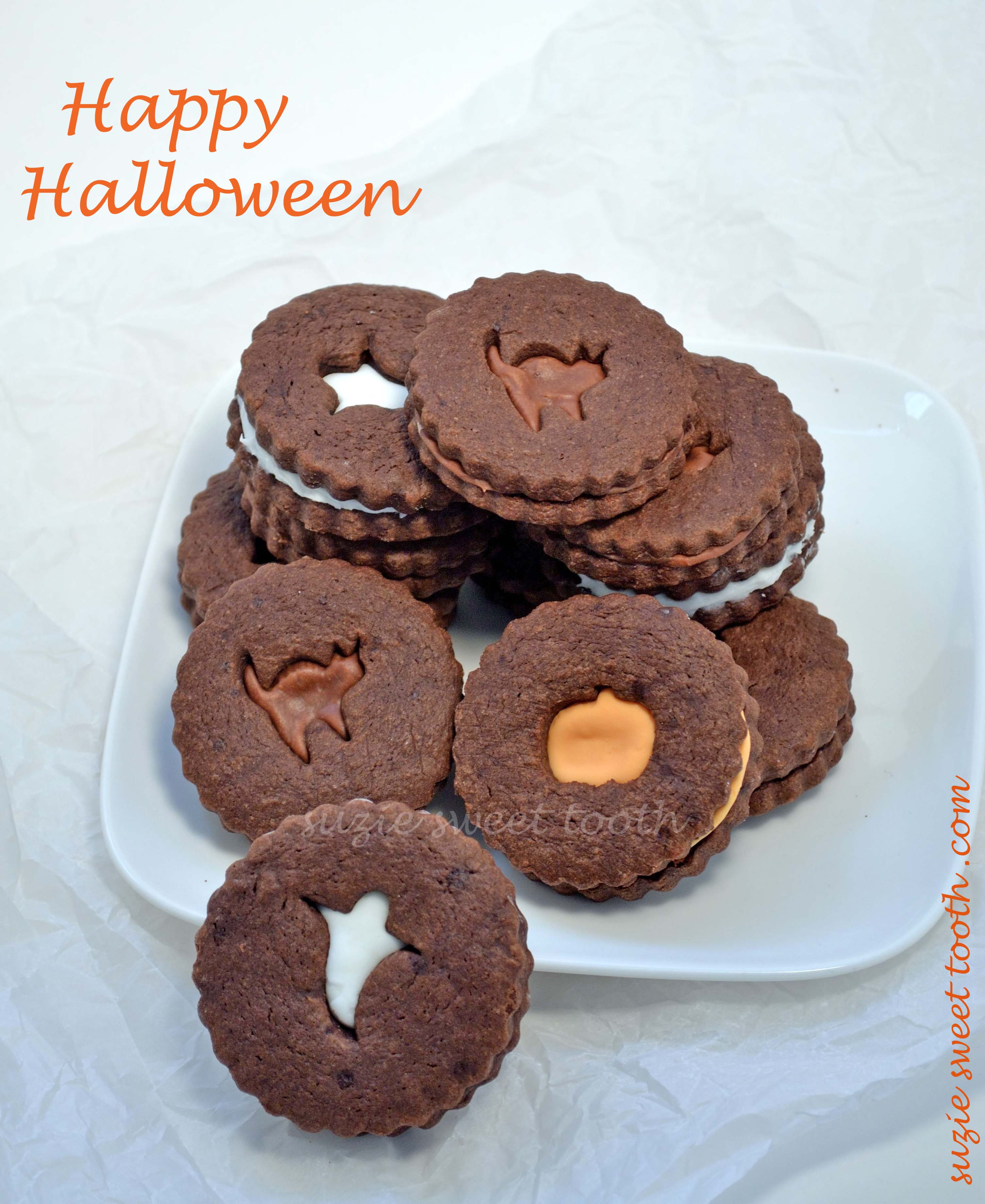 Is it possible to pass the age of 5 without eating an Oreo? I think not. Kids of dentists- I’m sorry….you will have to bum one off a classmate for a trade. Good luck with those carrot sticks…. Do we still want to eat Oreo’s at 55? Yes, definitely, and at every age in between. Do we like cutesy Halloween cut out Oreo inspired cookies? You betcha. Pick your filling; chocolate ganache, vanilla buttercream, even peanut butter filling. Only if you are thinking of packing the peanut butter version in your kid’s lunch you might have to retain an attorney first, so best not go there. Peanut butter lunch treats are now pretty much extinct in 49 states I think. I’ll give you all three fillings and you can decide. Make the peanut butter version for home. I used a Wilton Linzer Halloween cutter set. It came with various cut outs: cat, bat, ghost, pumpkin, owl. The cat was my favorite. You can find it on Amazon.com Click here if interested.