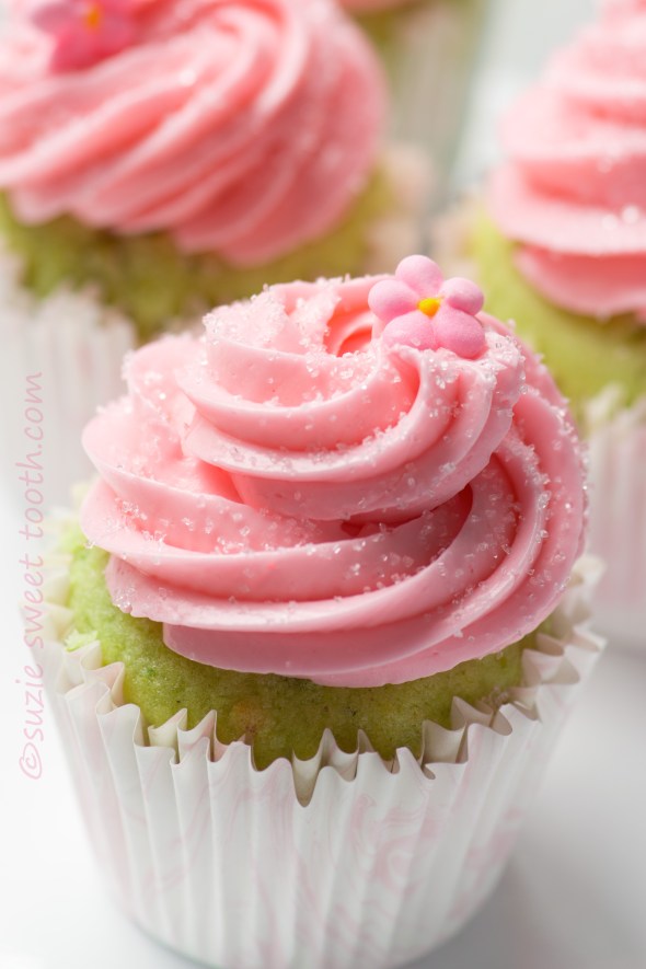 I think everyone knows my obsession now with rose flavored desserts, and pistachio and rose are like BFF’s. Since I had some rose buttercream leftover from my macarons it gave me an idea to come up with a recipe for pistachio and rose cake. I still ended up making buttercream since my leftovers weren’t enough but no bother it was a good excuse to make a layer cake. A word to the wise since pistachios are a bit expensive- make sure you buy them from a purveyor who’s supply is quickly turned over and store them if not using right away in the freezer. I had bought some a while back (even stored them right away in the freezer) but when I thawed them they were rancid. It was from a bulk bin of nuts so I think they sat there a while. Anywho…I digress. This cake turned out to be one of my absolute favorites of all time. It kind of reminds me of the preppy pink and green from the 80’s. Muffy and Biff would be proud. I admit I bumped up the color of the cake with a bit of mint green gel food color just because I found it added that extra pretty preppy punch from being nicely dressed to va va voom.